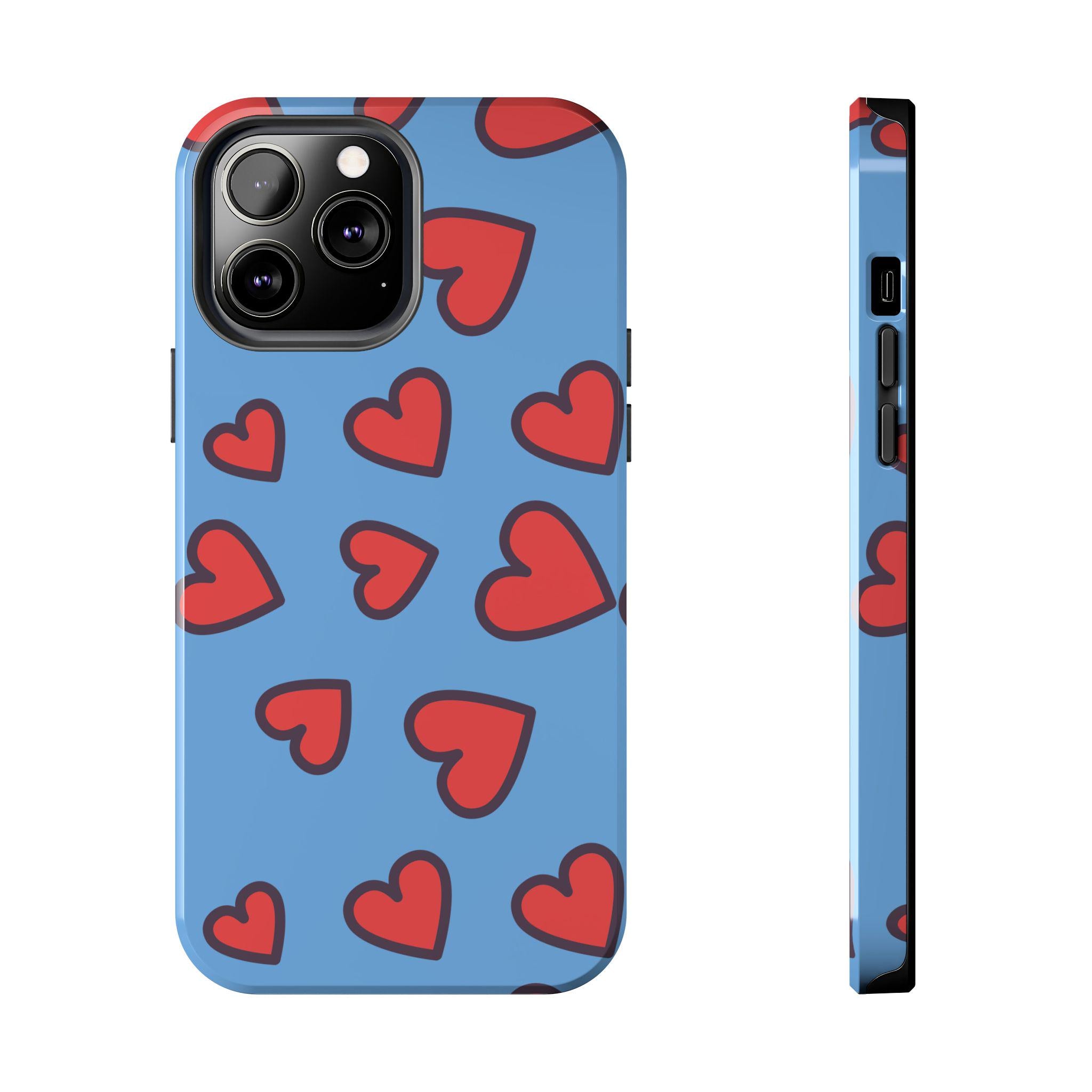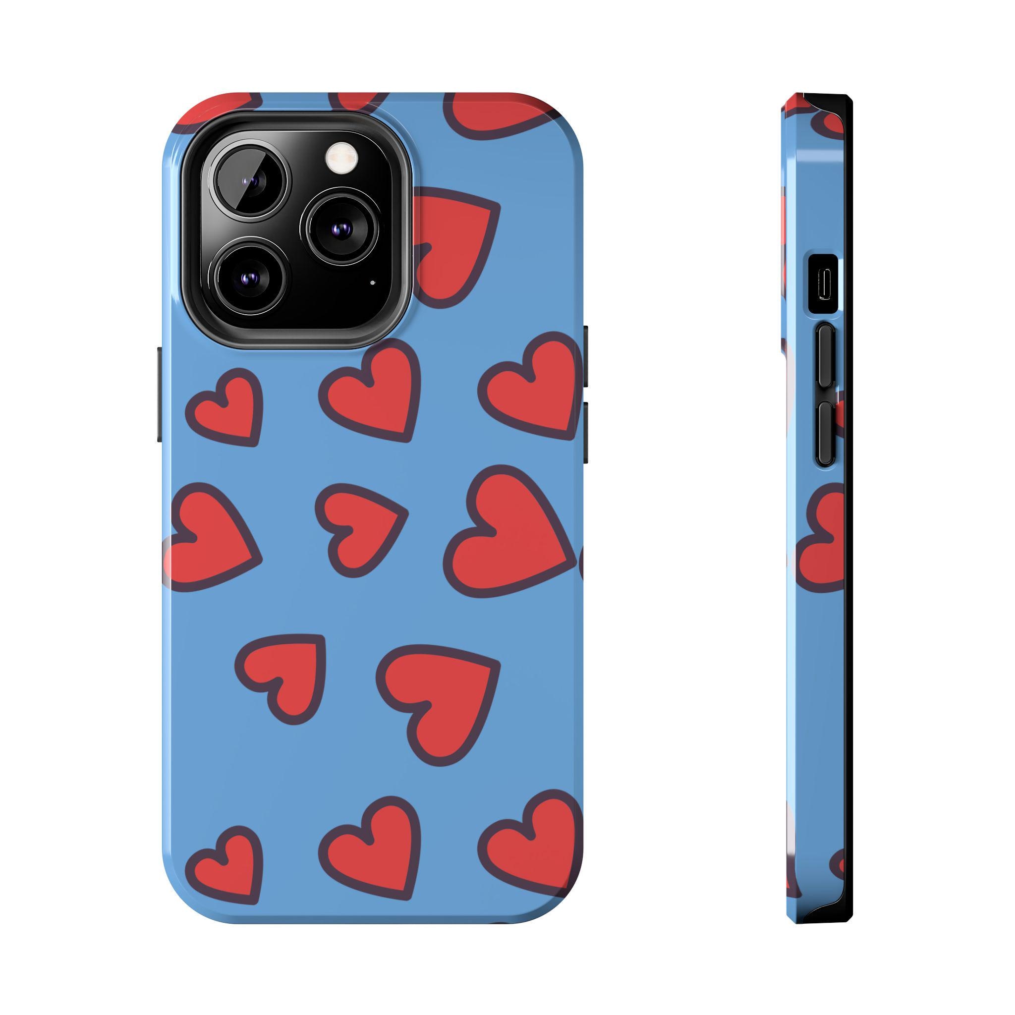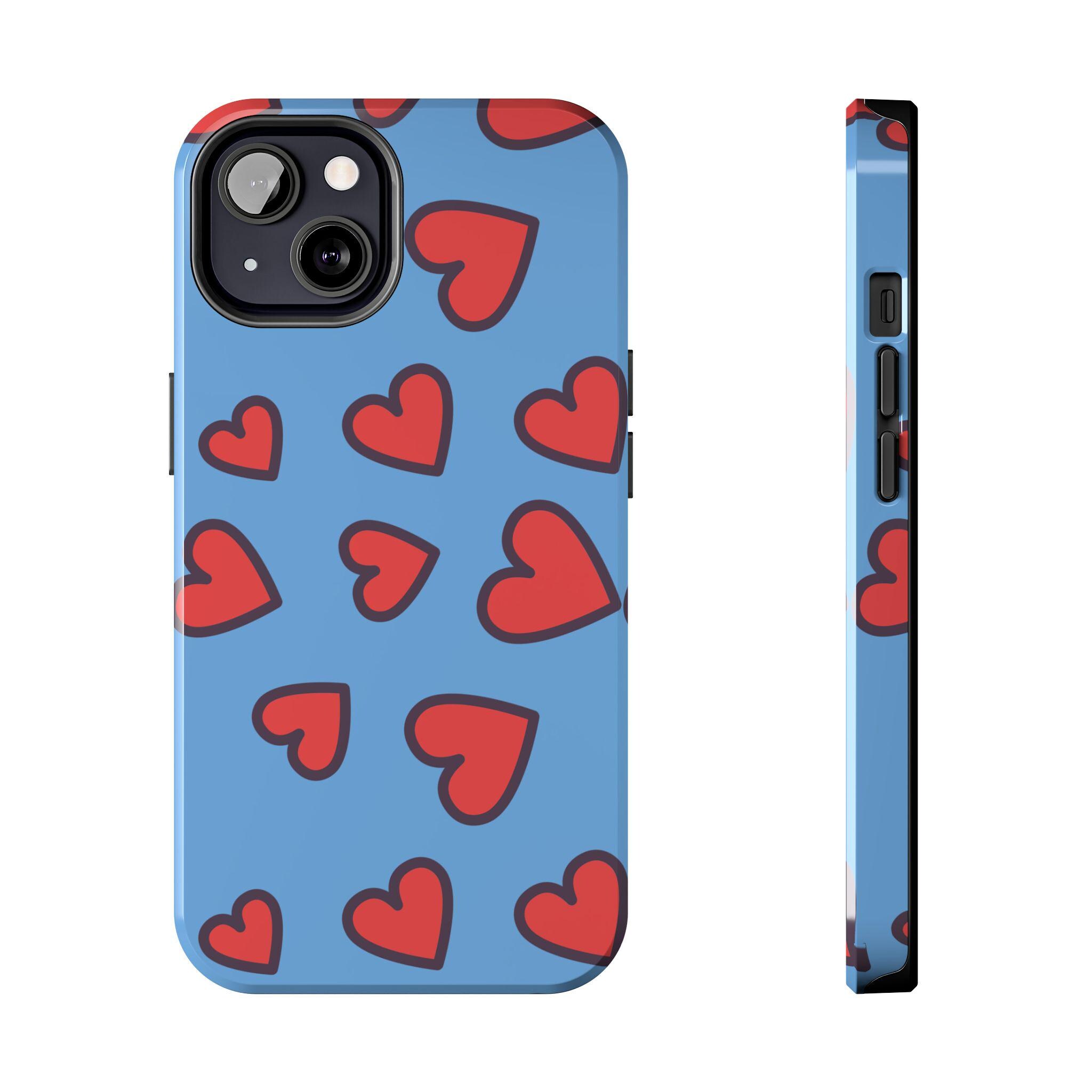 Introducing our vibrant Tough Phone Case, designed to blend functionality with style. This sturdy case features a playful heart pattern on a soothing blue background, perfect for those looking to express love and fun in their daily life. With its robust construction, this phone case feels secure in hand while providing optimal protection against bumps and drops. Ideal for teens, young adults, and anyone who enjoys a colorful addition to their tech accessories. This phone case makes a thoughtful gift for romantic occasions, birthdays, or ‘just because’ celebrations, bringing a cheerful touch wherever it goes.