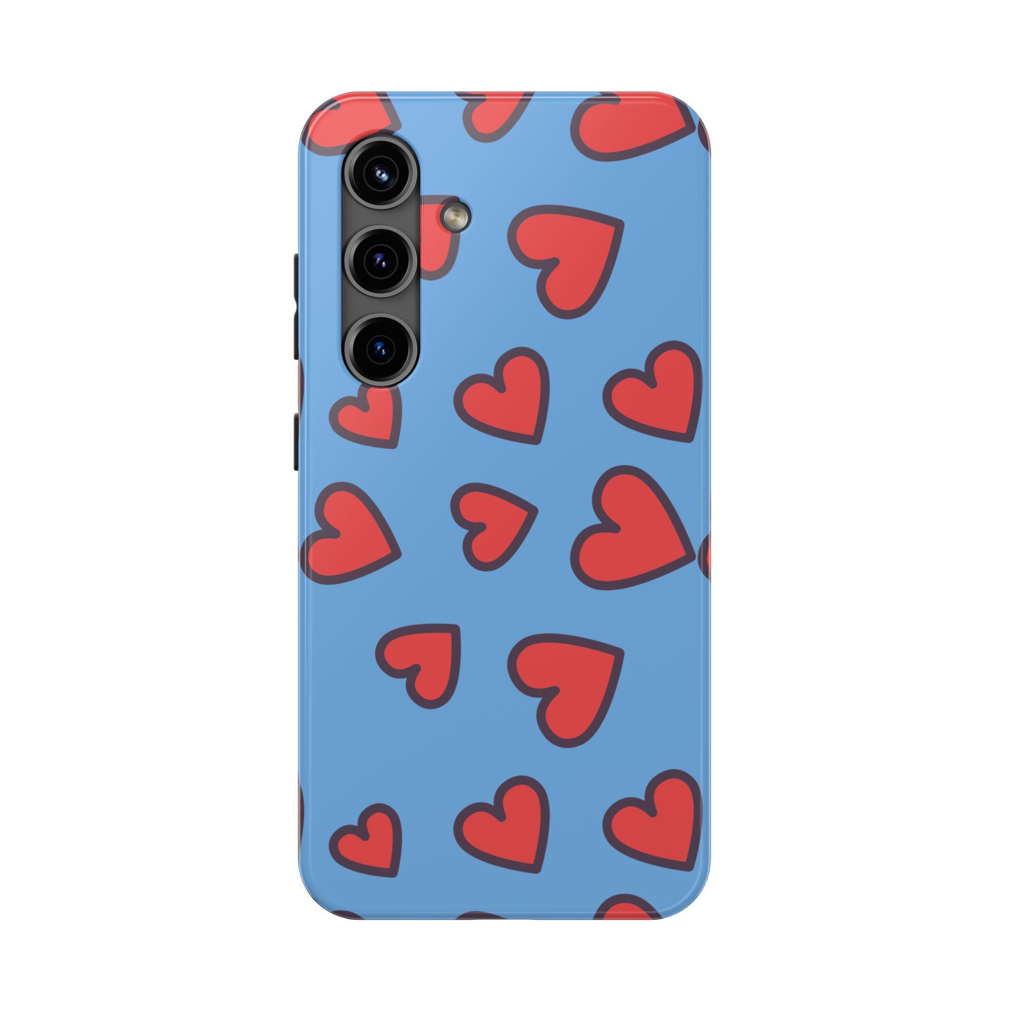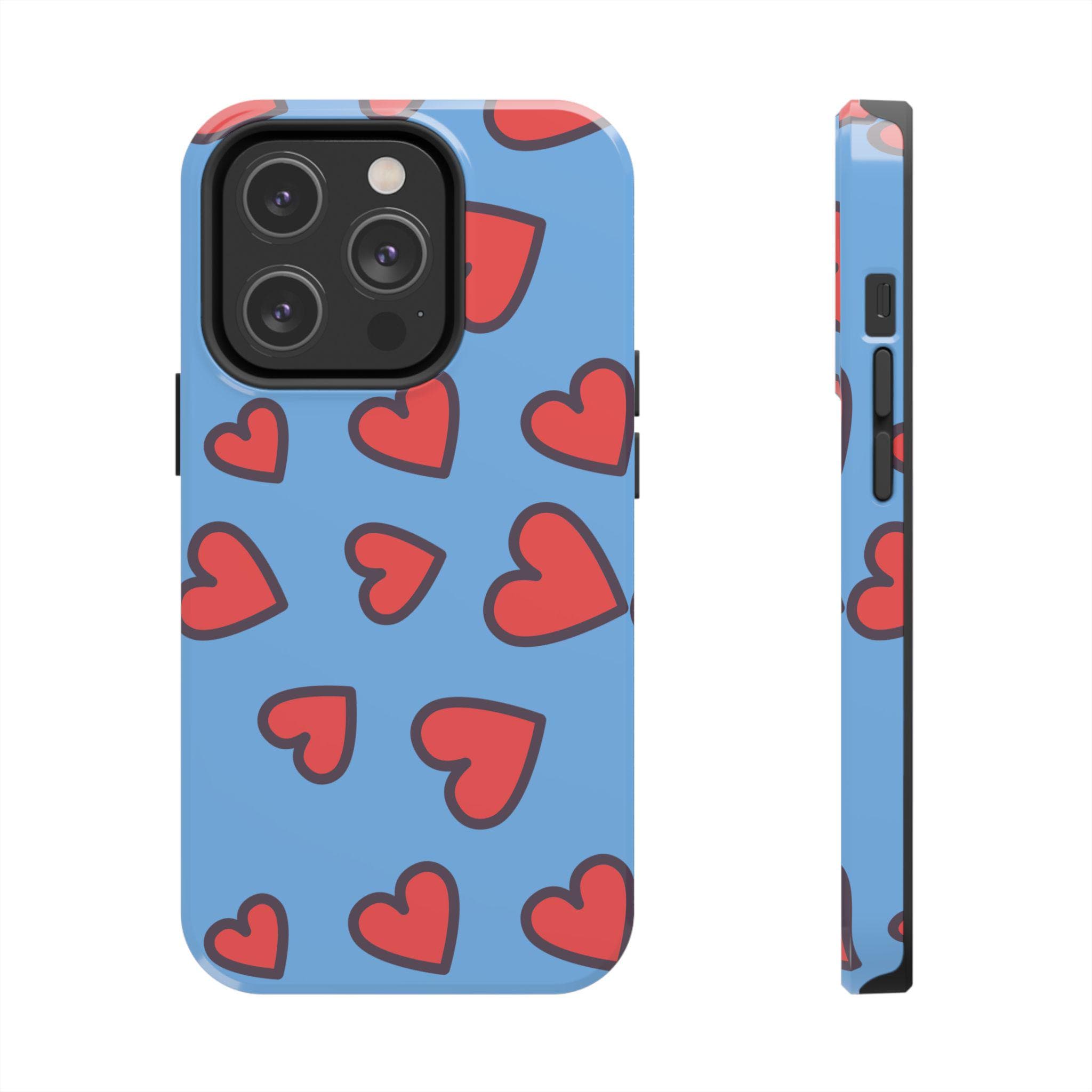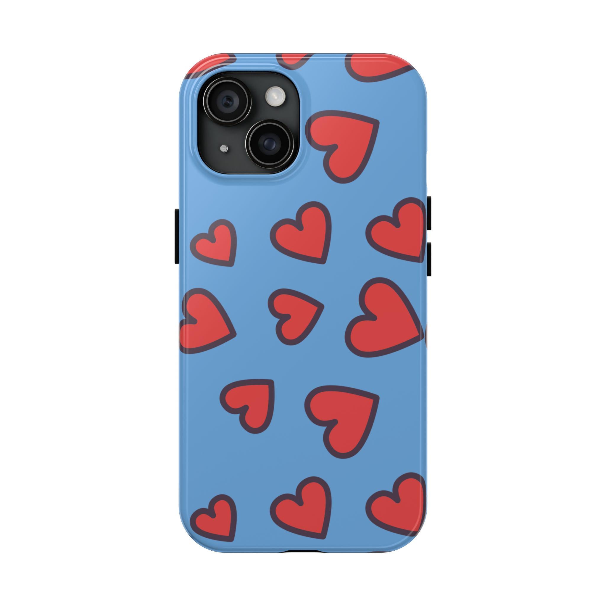 Introducing our vibrant Tough Phone Case, designed to blend functionality with style. This sturdy case features a playful heart pattern on a soothing blue background, perfect for those looking to express love and fun in their daily life. With its robust construction, this phone case feels secure in hand while providing optimal protection against bumps and drops. Ideal for teens, young adults, and anyone who enjoys a colorful addition to their tech accessories. This phone case makes a thoughtful gift for romantic occasions, birthdays, or ‘just because’ celebrations, bringing a cheerful touch wherever it goes.